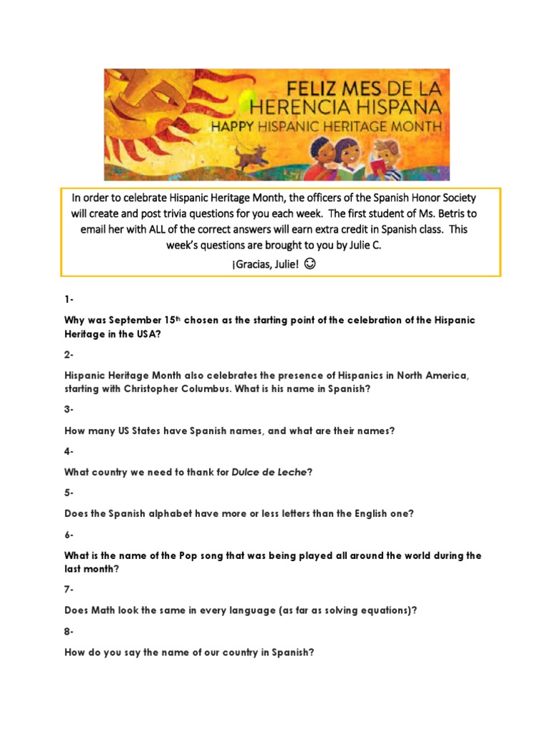 Later, in 1988, congress extended the celebration to one month (from september. Beaufort high wins spanish quiz bowl they won first place at uscb and la. Get to learn more about them by. To play this quiz, please finish editing it. Johnson to declare national hispanic heritage week for the week including the 15th and 16th of september.